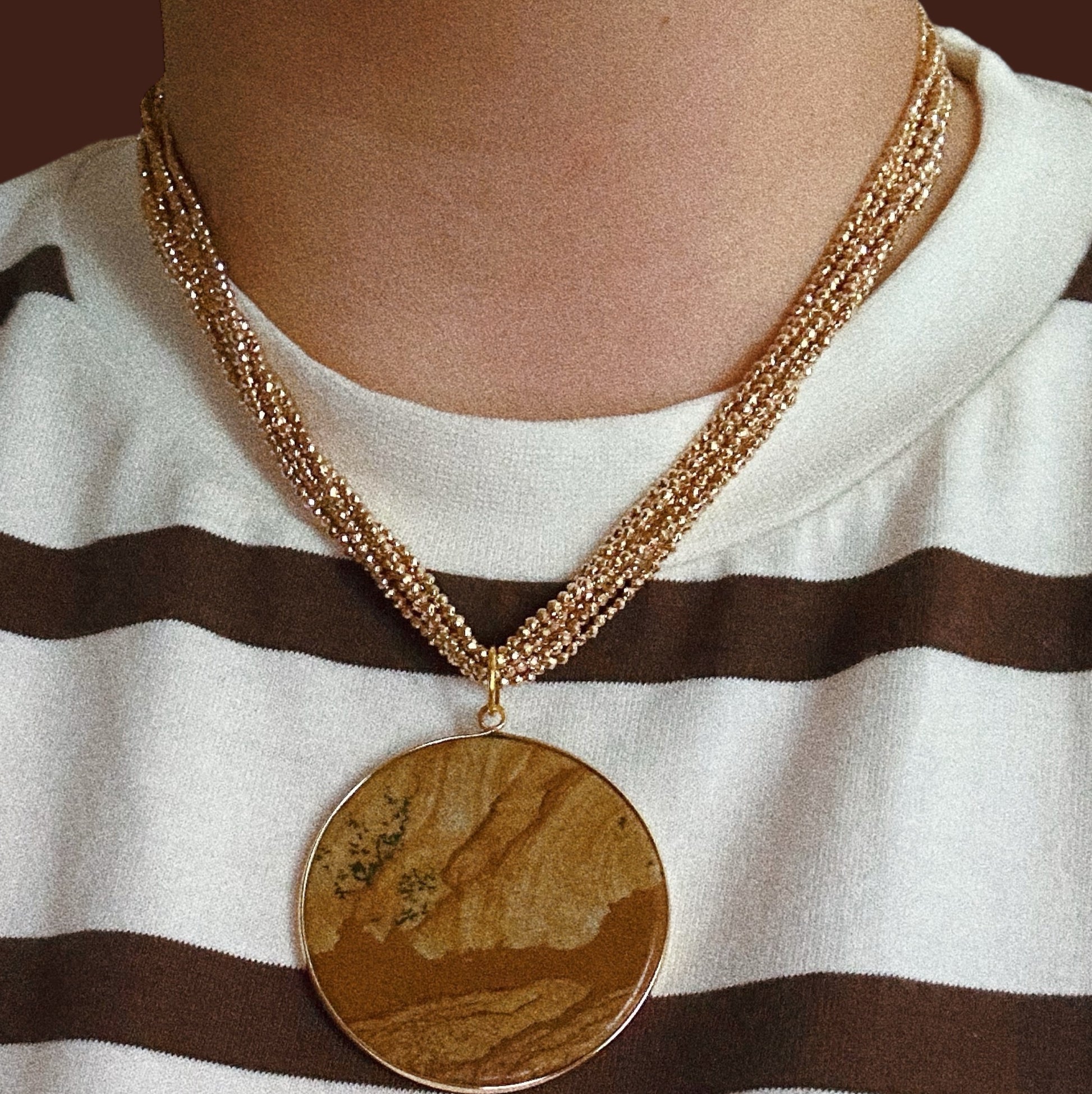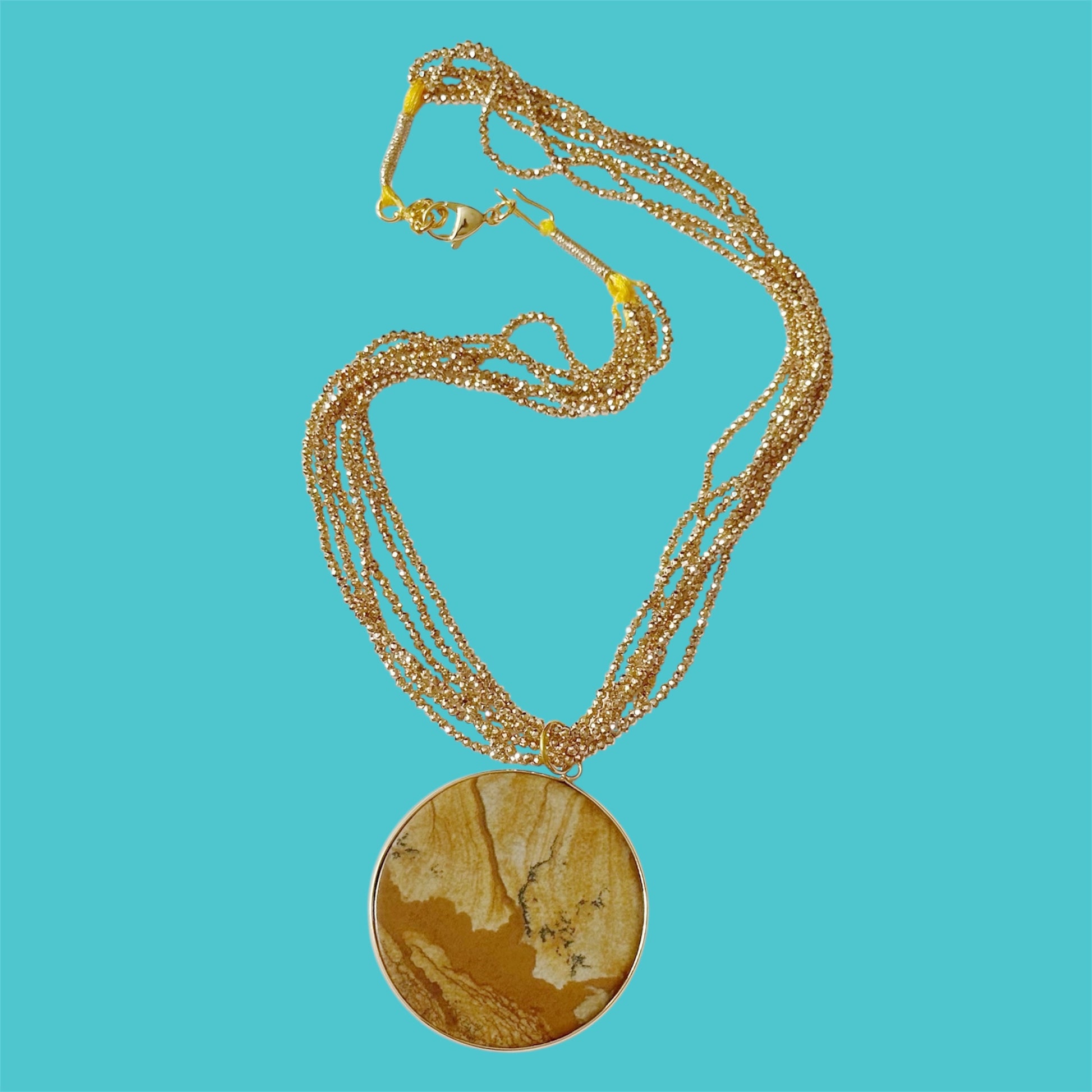 Style 3 - Gold beaded chain, Picture Jasper round pendant, gold plated stainless steel hardware.
