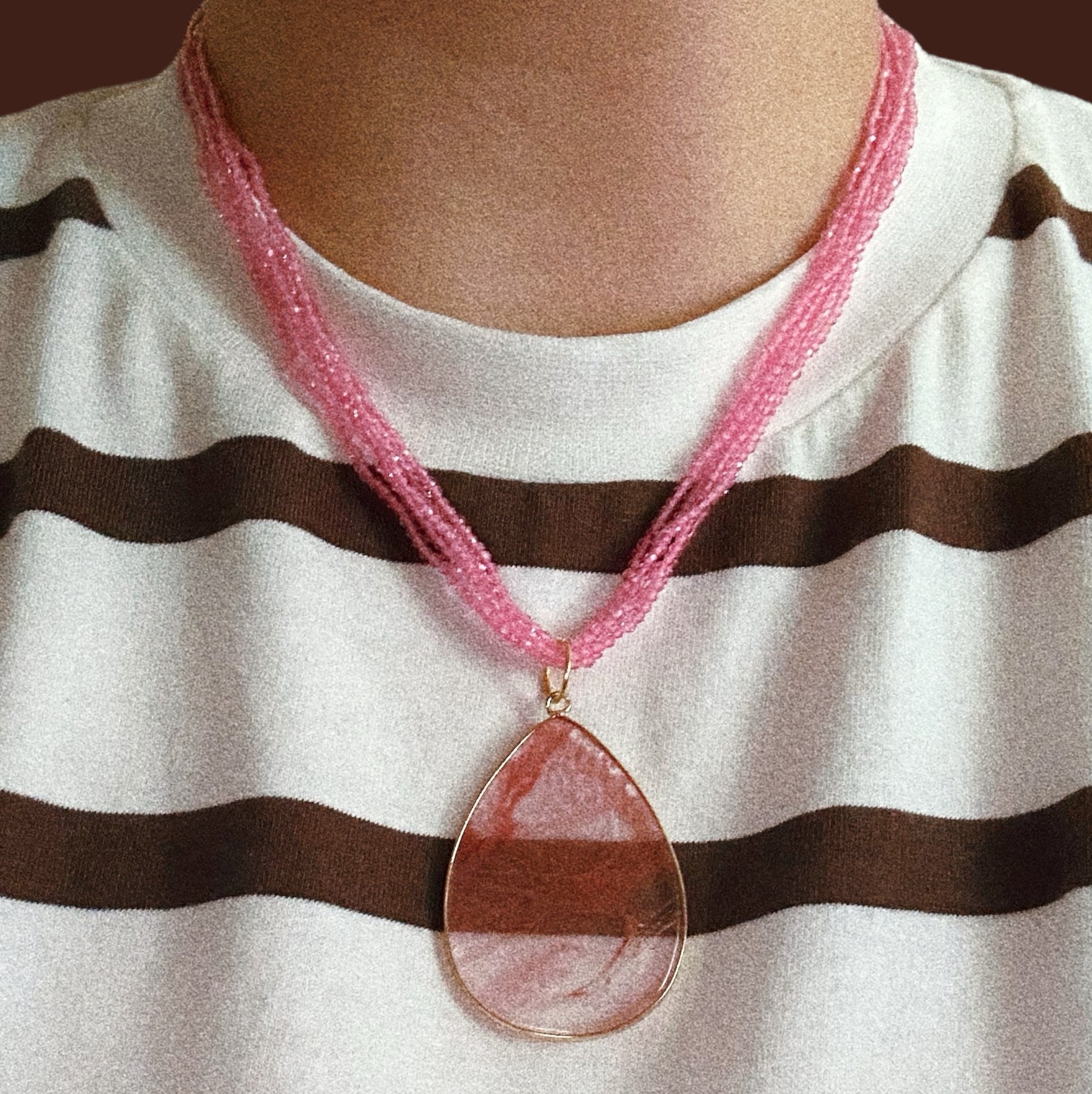 Style 2- Bubblegum pink beaded chain, Watermelon teardrop stone pendant, gold plated stainless steel hardware.