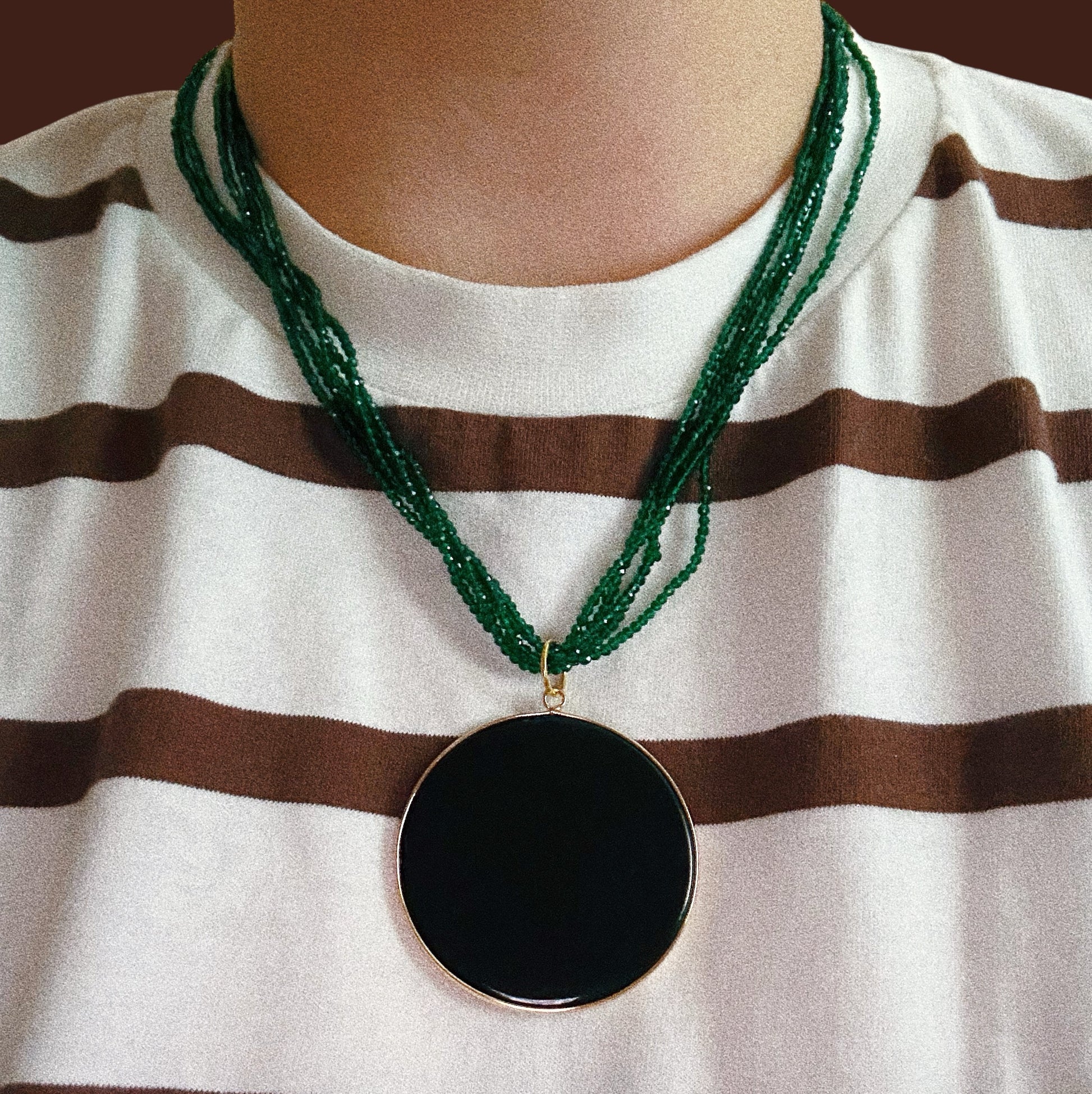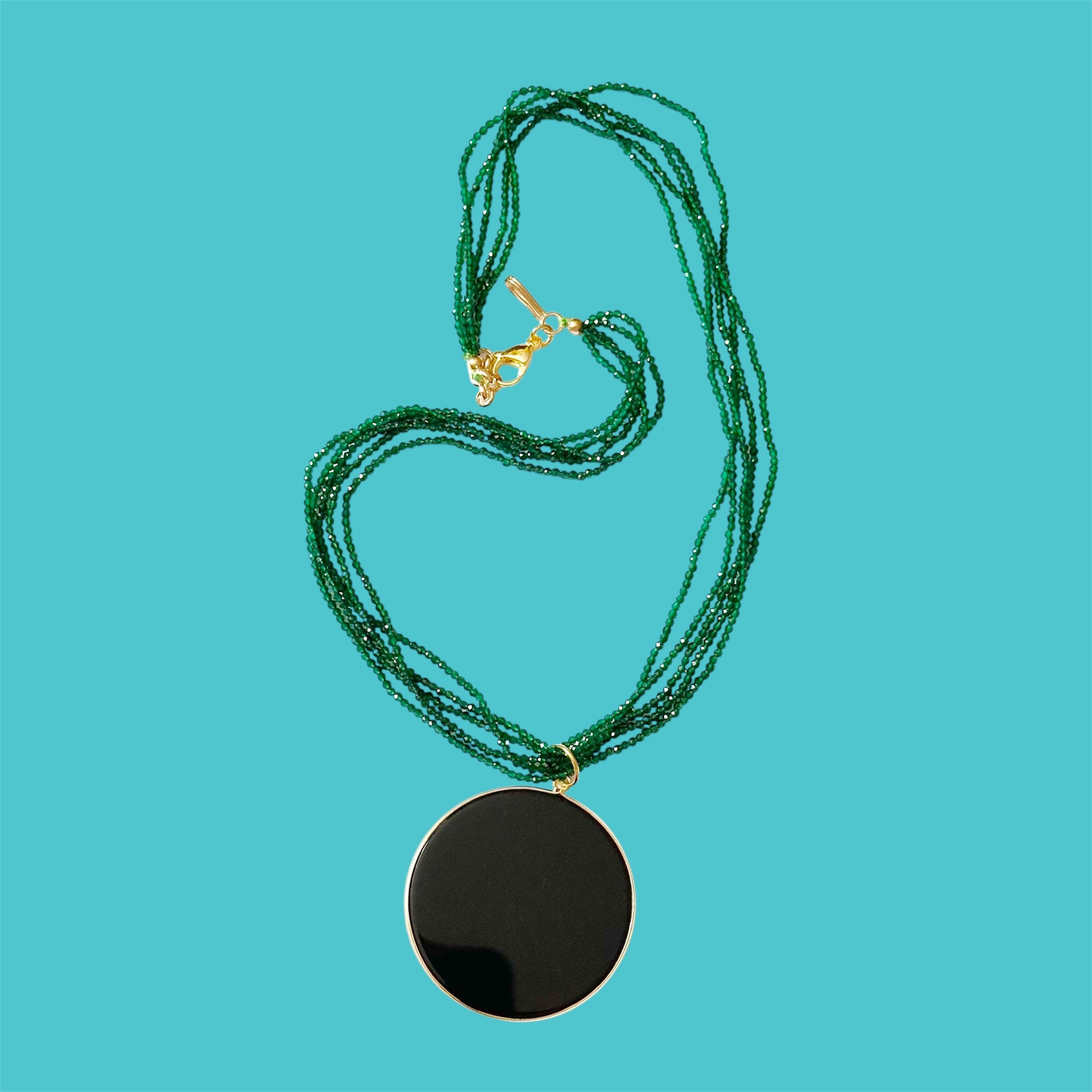 Style 5- Forest green beaded chain, Obsidian round pendant, gold plated stainless steel hardware.