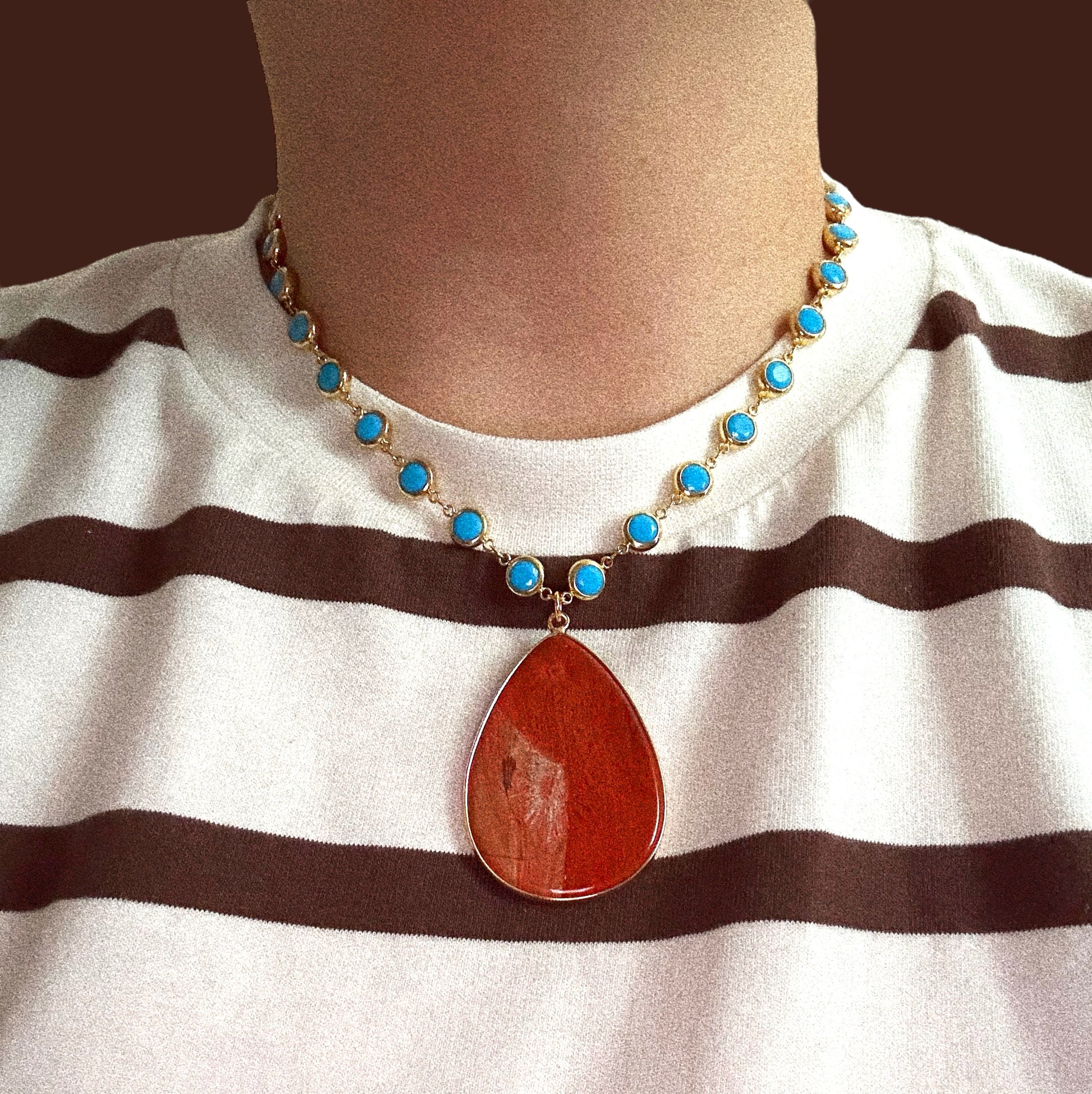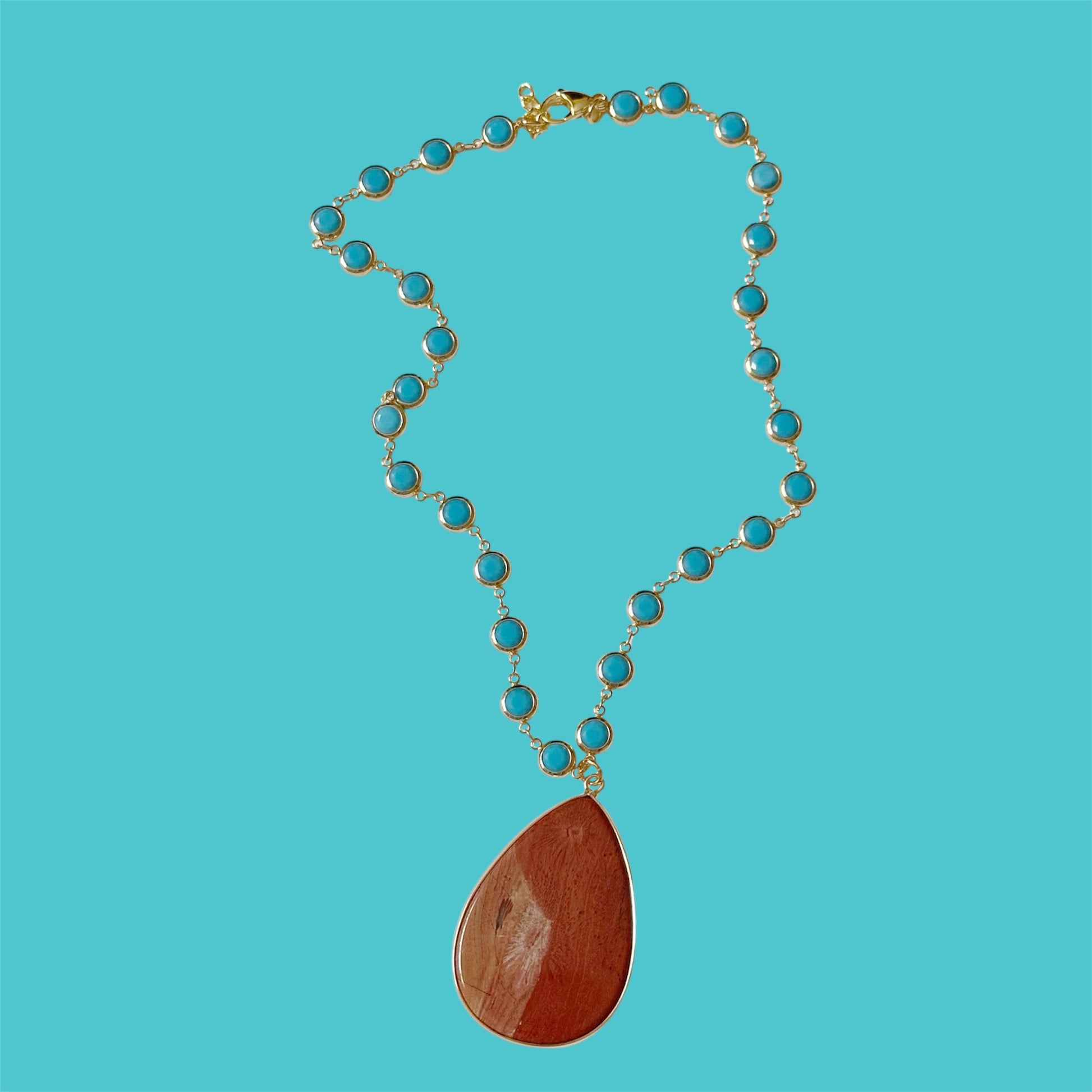 Style 1 - 16" turquoise and gold plated chain, Carnelian inspired natural teardrop shaped stone.