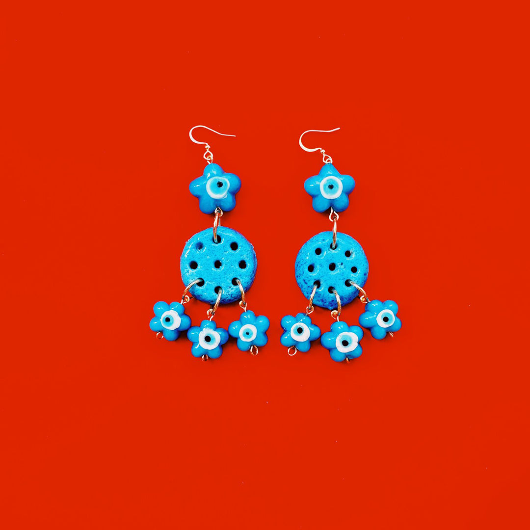 Blue Kuzhaka dangles gold plated stainless steel hardware and findings, pair weighs 1.2 ounces.