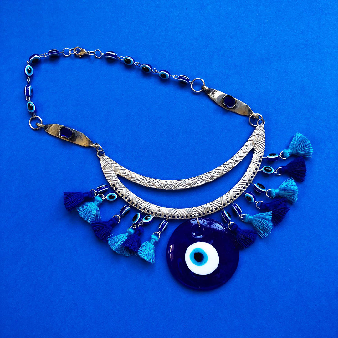 Very limited stock, old world meets new world Nazar tassel necklace. Silver findings, glass eye, vintage stone findings.