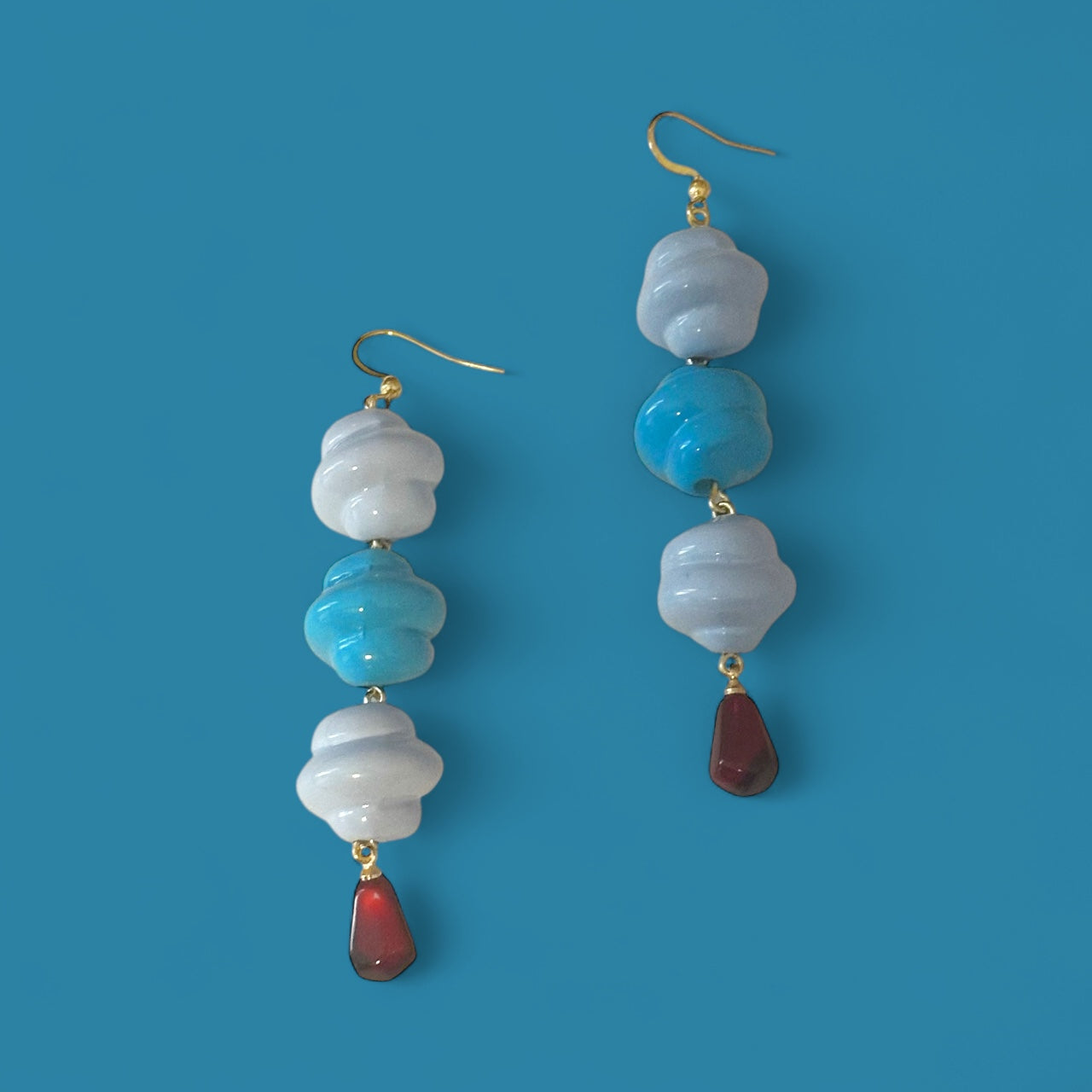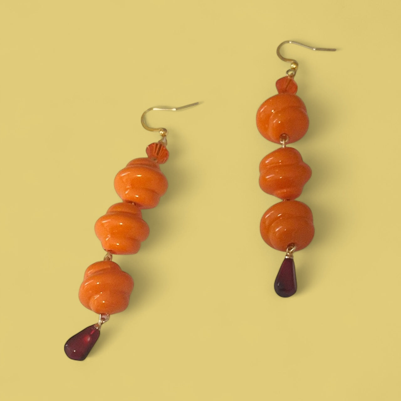 Acrylic beading, resin and gold plated pomegranate inspired seeds, gold plated stainless steel hardware.