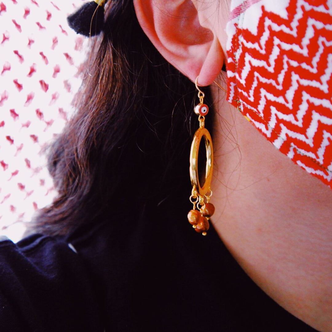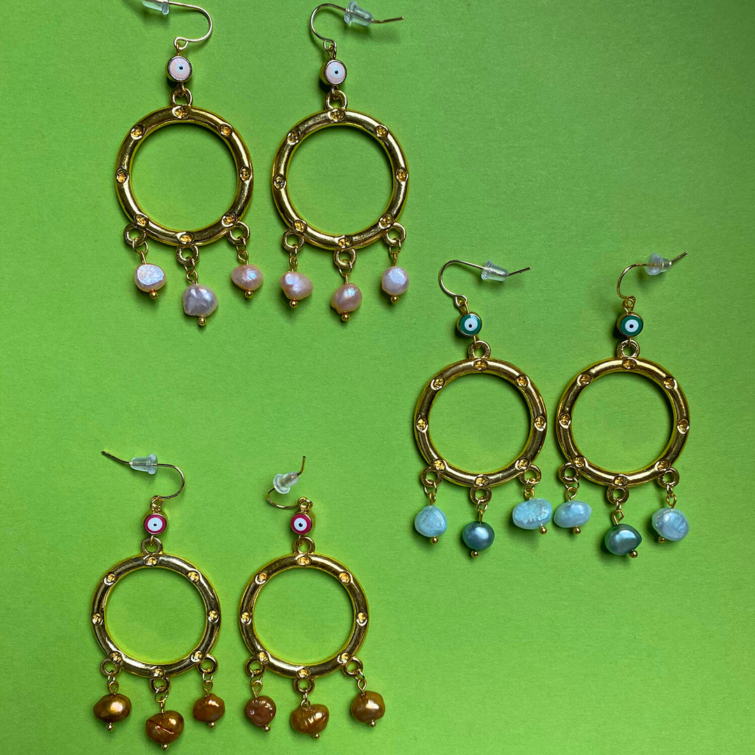 Gold plated hardware/ E-Coated brass ear hooks, freshwater pearls.