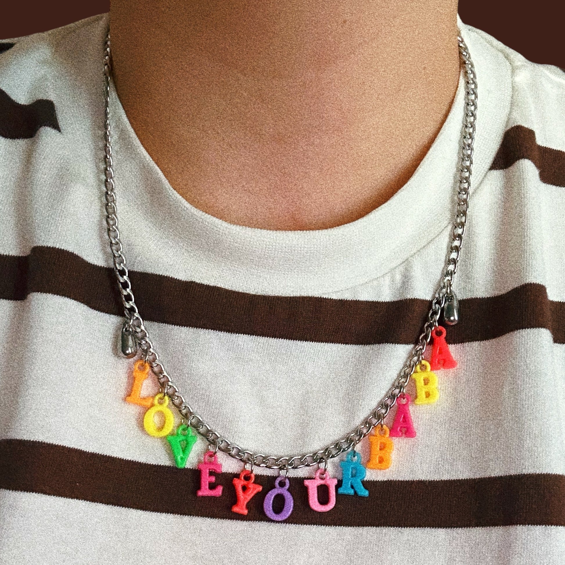 Style 2 - Love Your Baba, stainless steel chain and hardware, acrylic lettering and stainless steel charm.