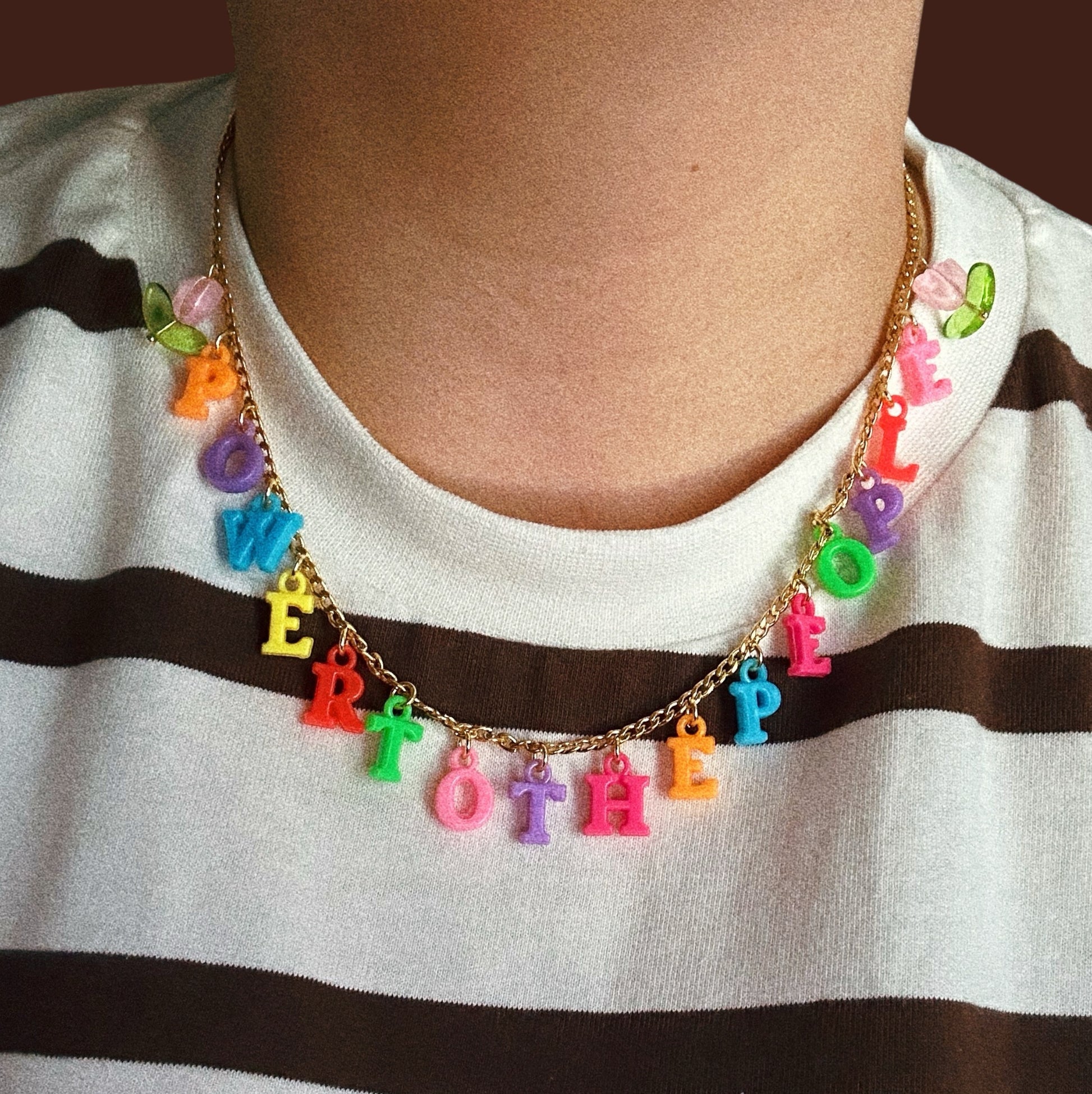 Style 3 - Power to the People, 17.5" stainless steel chain and hardware, acrylic letters, tulip beads.