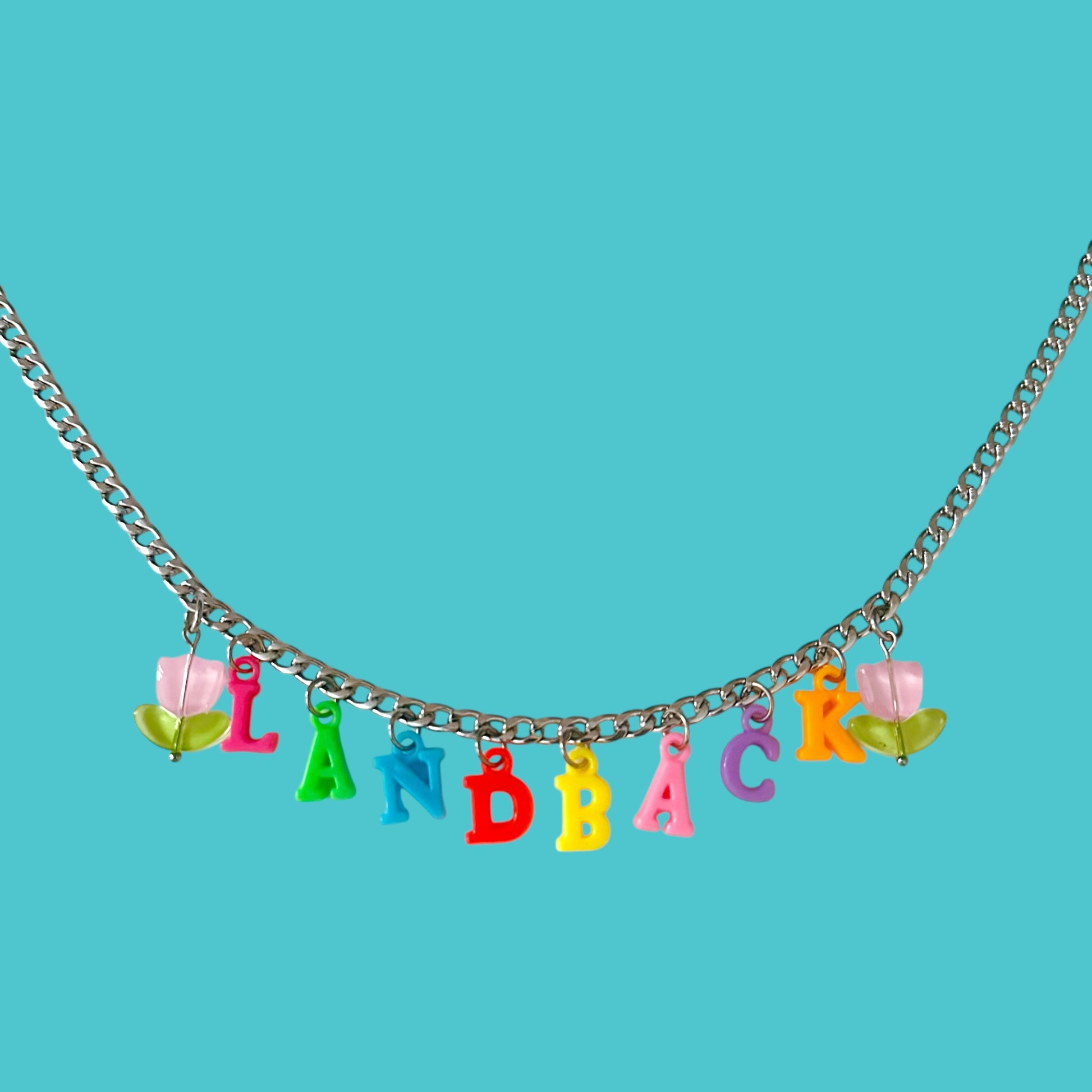 Style 4- Land Back - 19.5" stainless steel chain and hardware, acrylic letters, tulip beads.